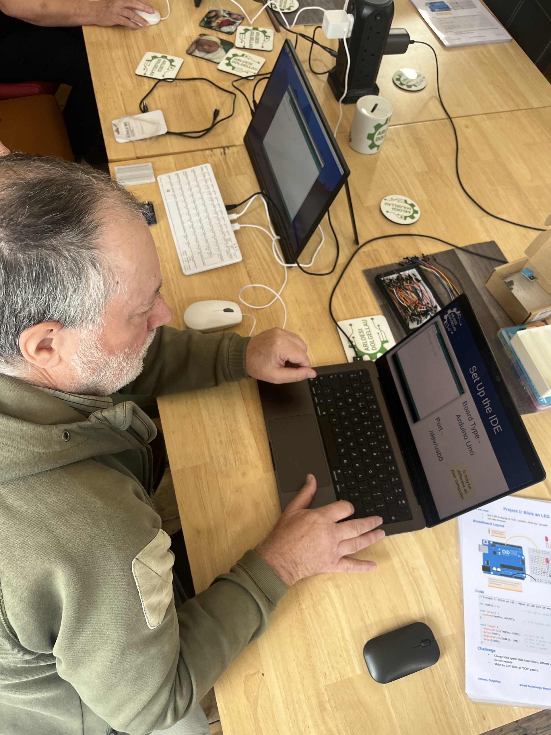 At Arloesi Dolgellau we offer space and resources for people to start or develop their learning journey in digital skills, STEM, arts and crafts, and AI. We believe learning should be accessible to all (young or old), hands-on, relevant, and exciting. We want to help people grow their confidence, skills, and aspirations.